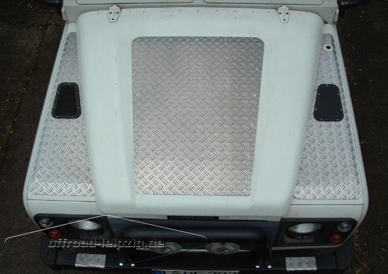Motorhaubenblech, für alle Land Rover Defender 90 / 110 / 130 One Ten, Tdi, Td5 (nicht Td4 ab Bj.2006) in Alu Quintett Riffelblech.